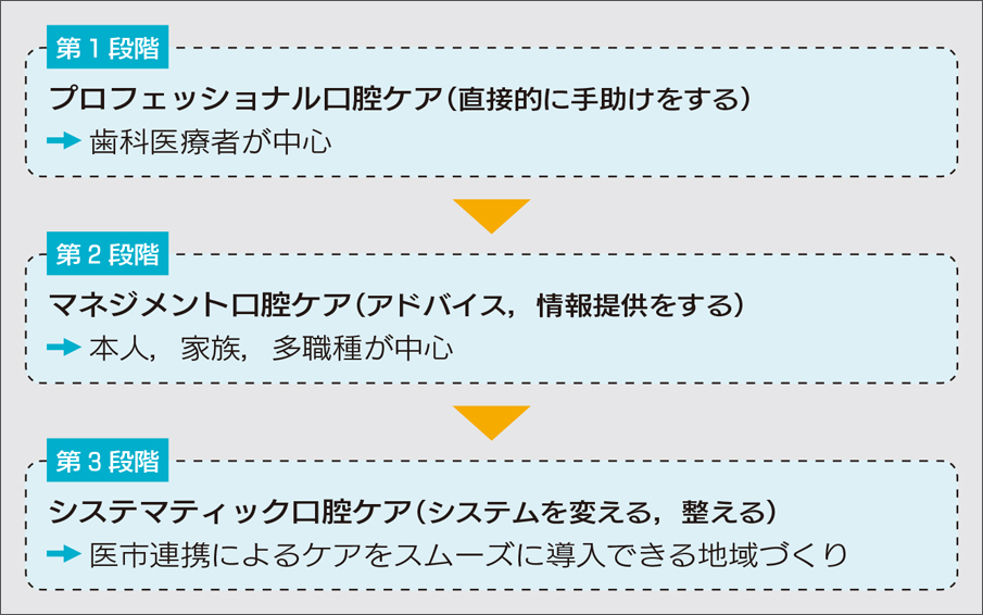 図2 口腔ケア浸透のための3段階.