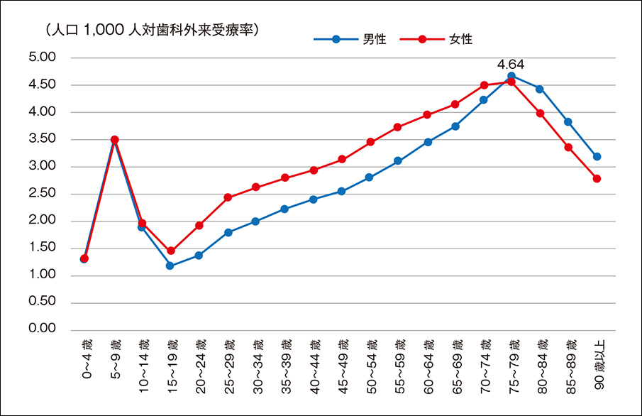 vol.6 人口1,000人対歯科外来受療率は75~79歳男性がもっとも高い